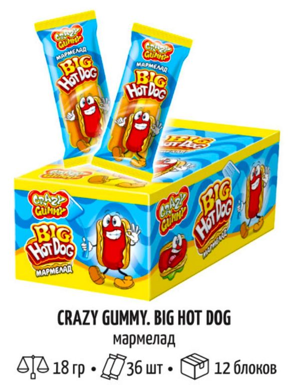 Мармелад «CRAZY GUMMY. BIG HOT DOG» 18гр*36шт*12 блоков