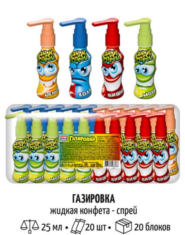 Жидкая конфета спрей "Газировка" ассорти 25мл*20шт*20 блоков